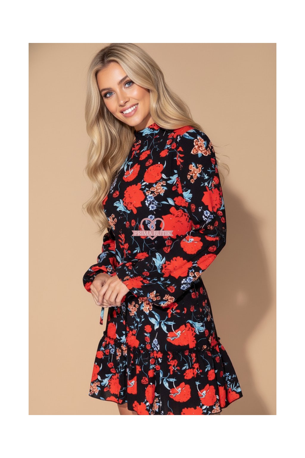 Nádherné letní květované mini šaty ve černé barvě s potiskem květů a dlouhým rukávem.