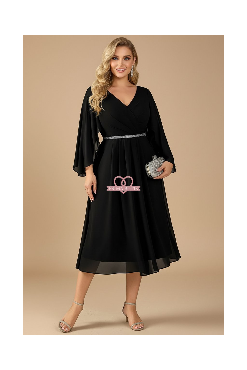 Společenské plesové šaty pro plnoštíhlé MARLEY černé