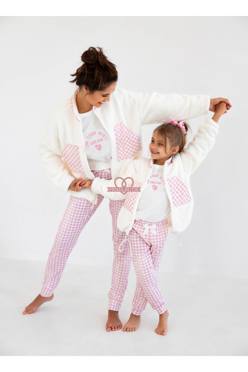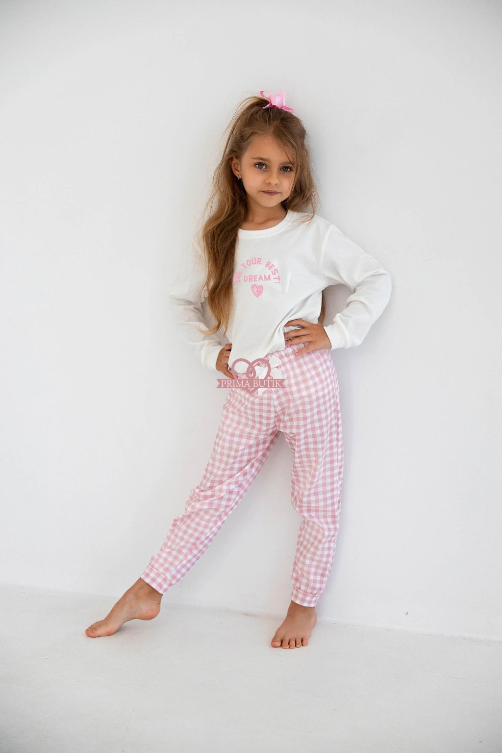 Dívčí pyžámko z kvalitní bavlny, tričko s dlouhým rukávem, kostkované kalhoty.