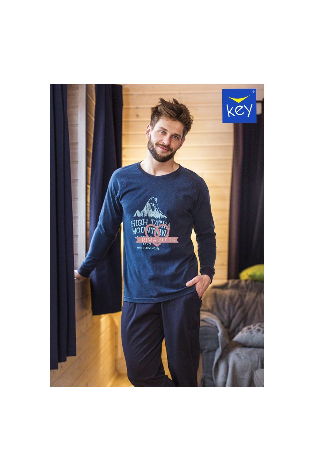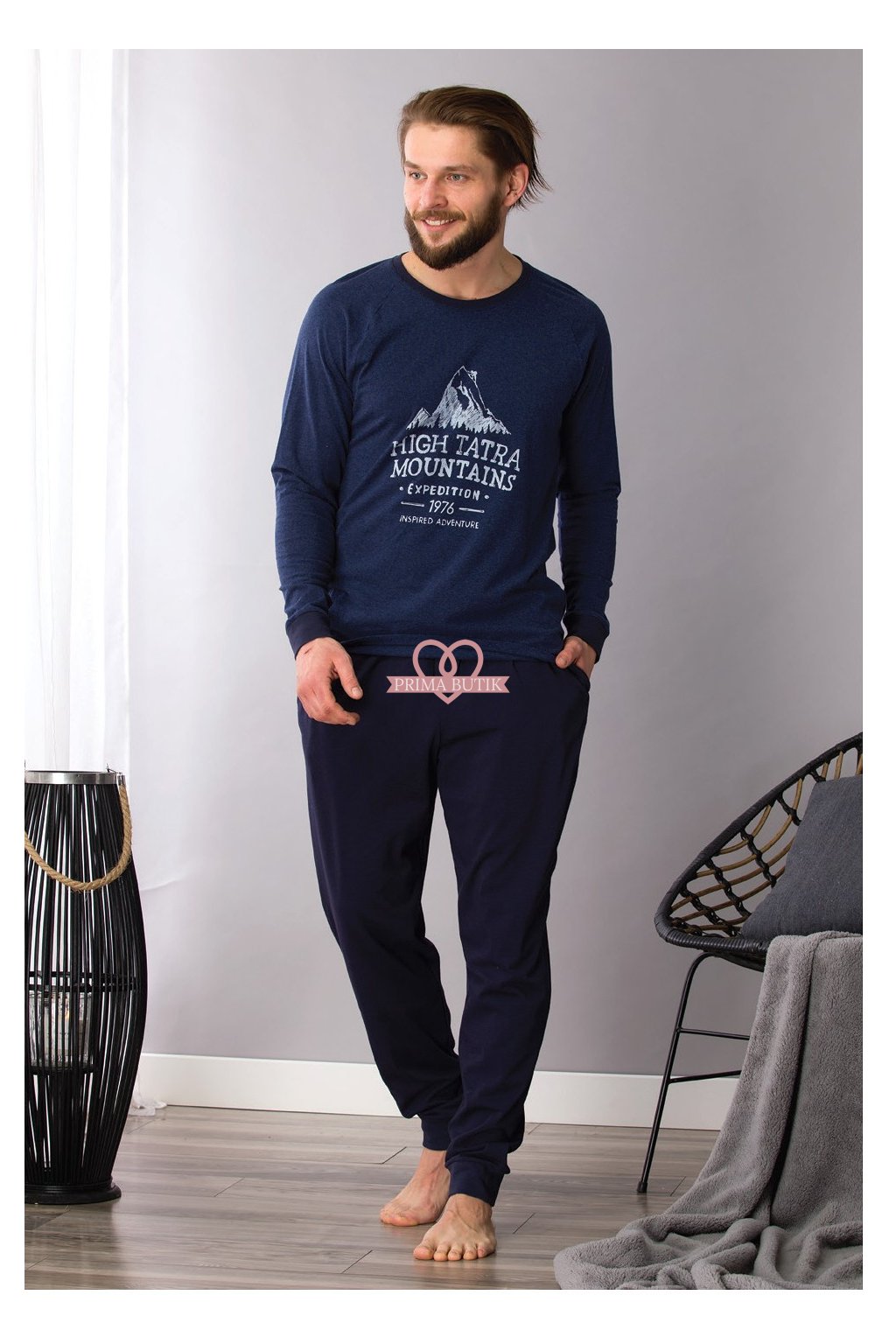 Pánské pyžamo - mikina s dlouhým rukávem - ozdobný potisk vpředu - dlouhé kalhoty volného střihu - s kapsami