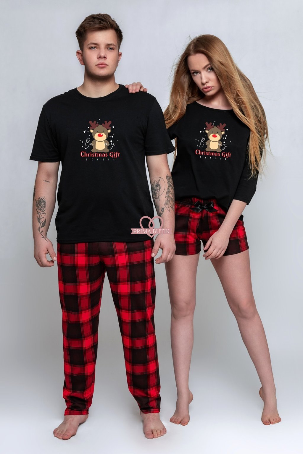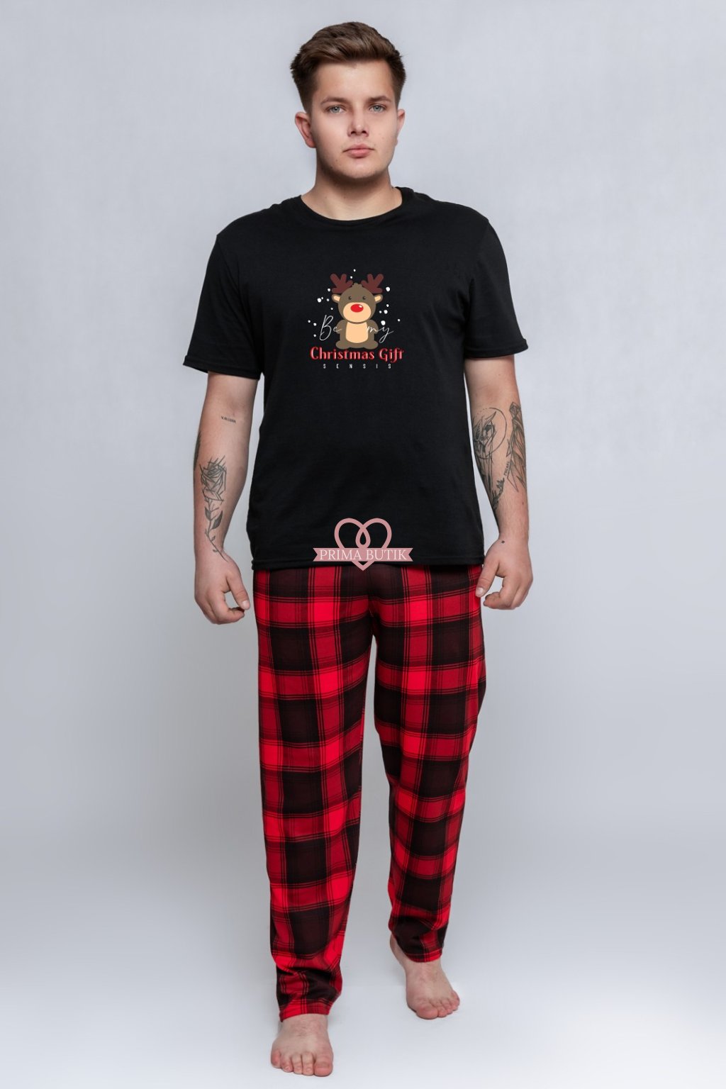 Pánské pyžamo- vyrobeno z kvalitní bavlny- tričko s krátkým rukávem- přední část zdobená vánočním motivem- dlouhé kalhoty v kontrastní barvě zdobené károvaným vzorem.Složení: 100% bavlna