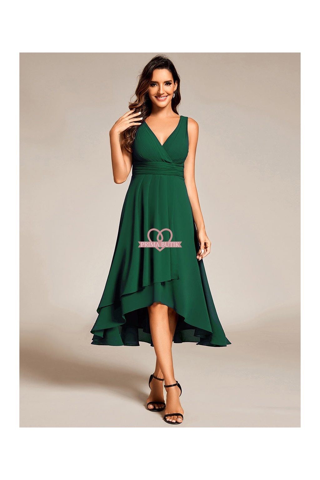 Koktejlové asymetrické Midi Šaty KARINE zelené