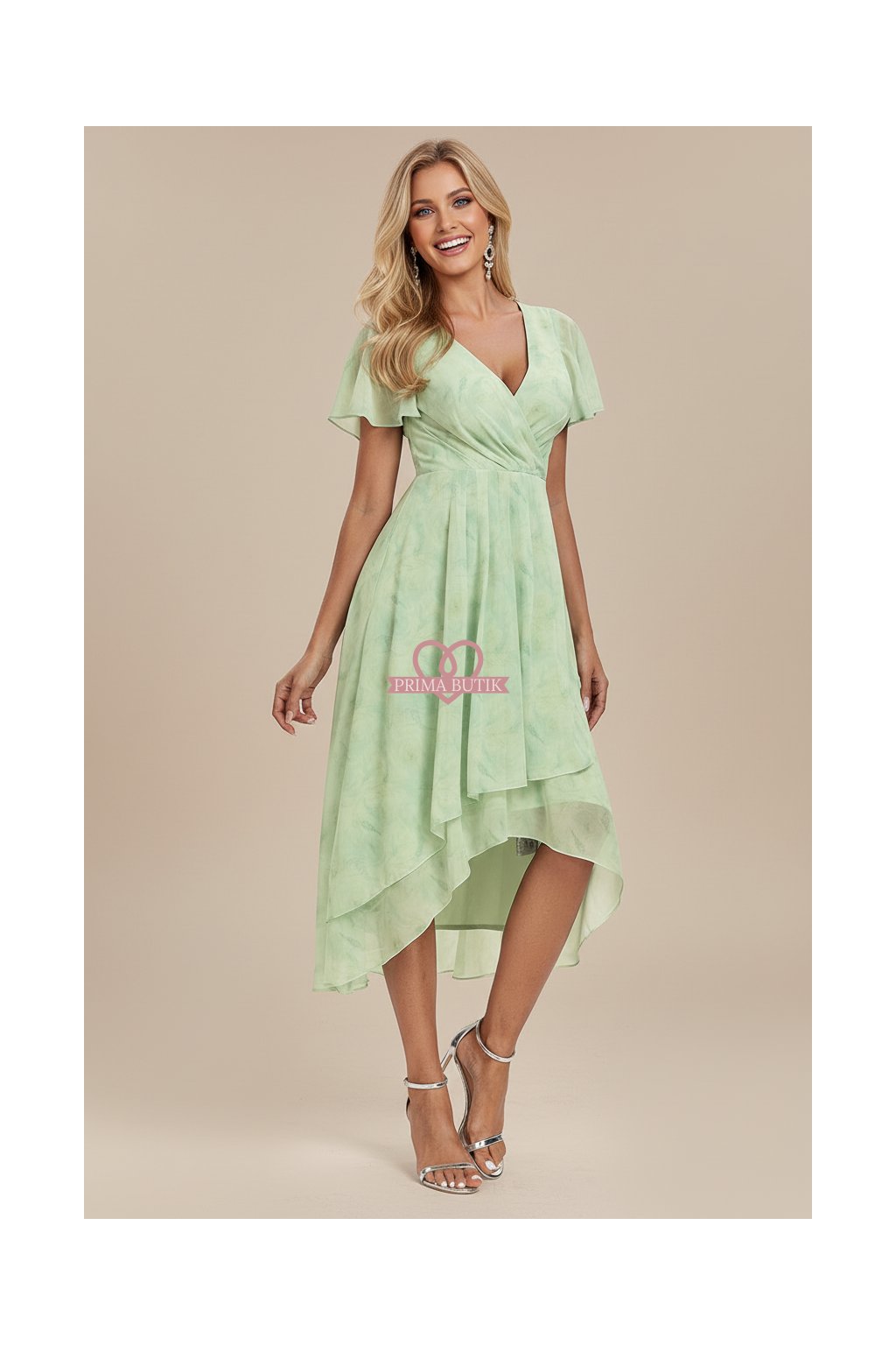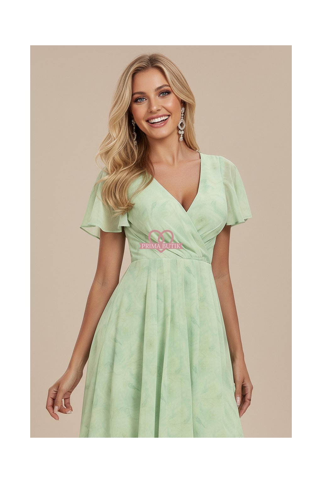Koktejlové květované Midi Šaty LEILA zelenkavé