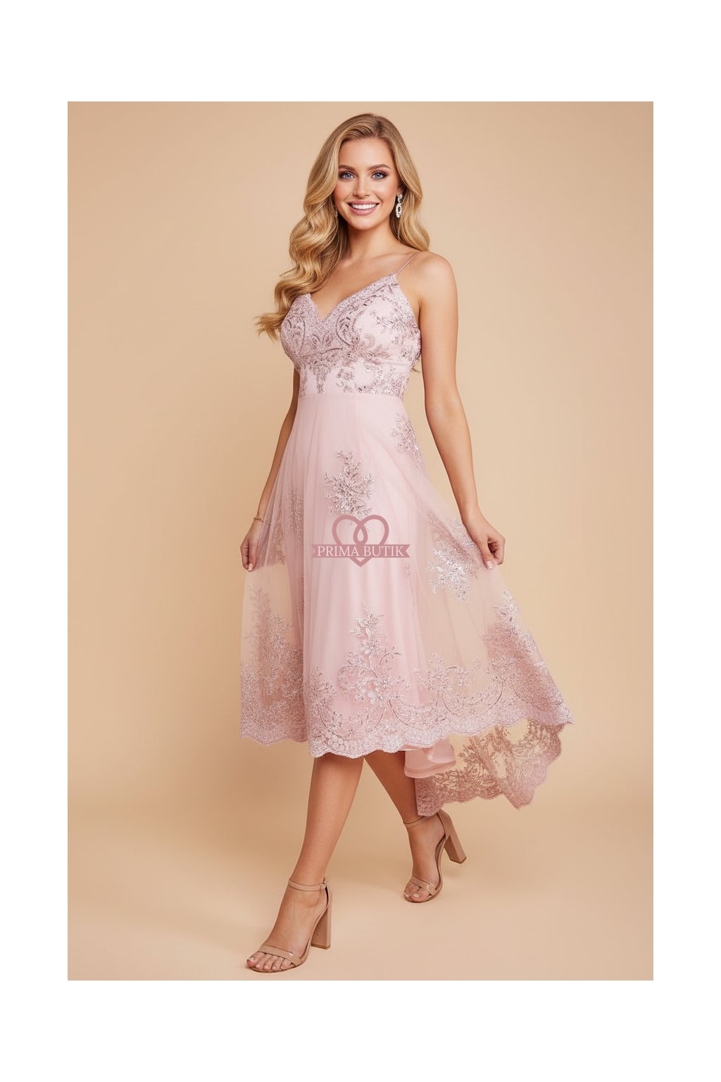 Asymetrické dlouhé krajkové šaty na svatbu pro družičky či na ples.