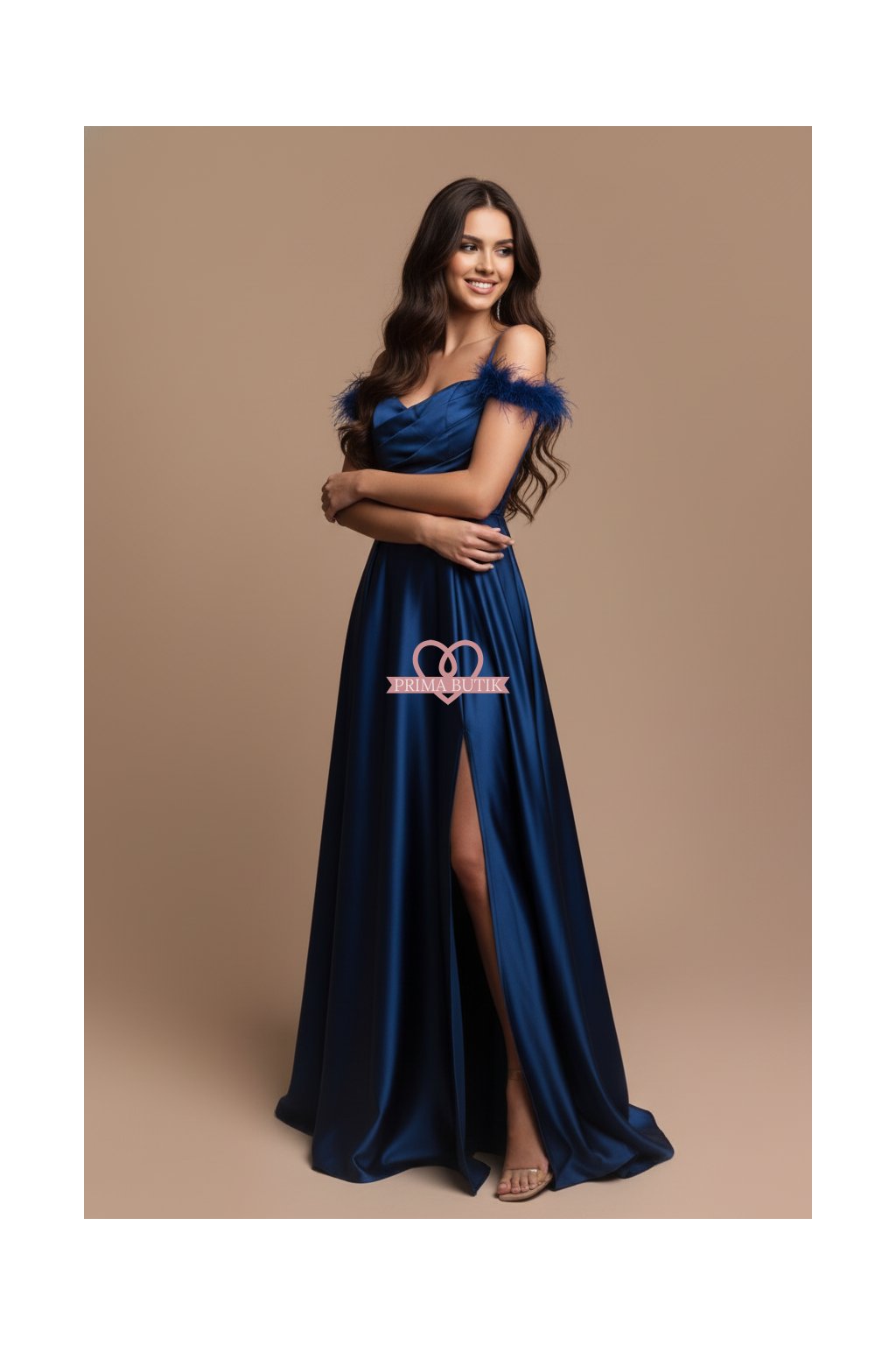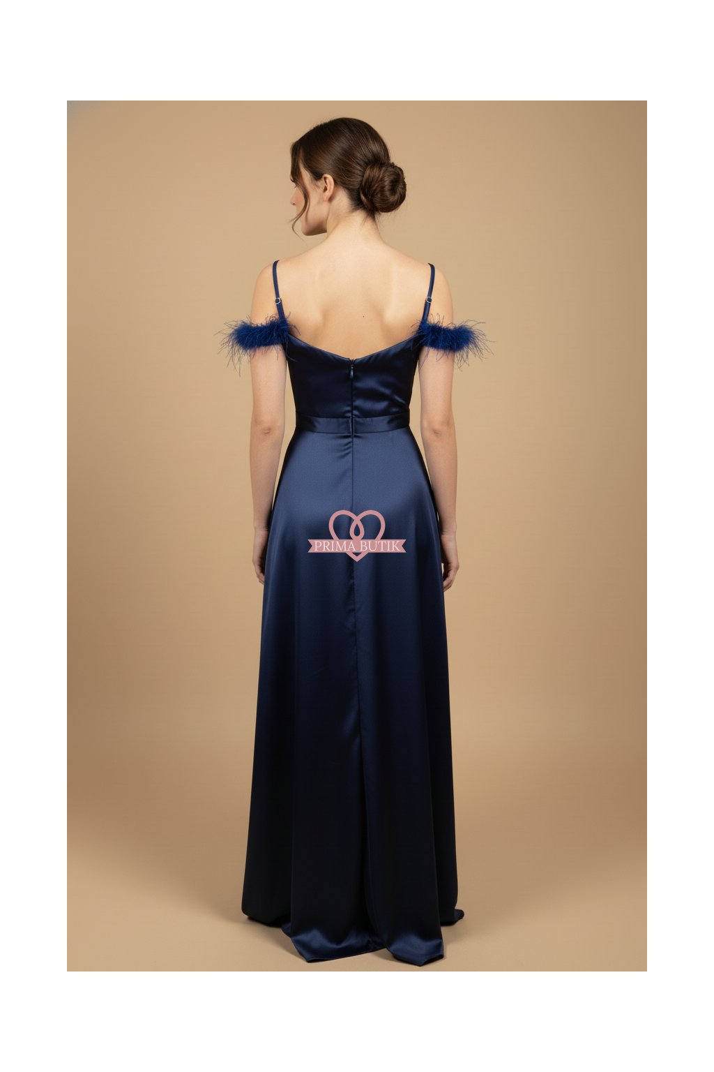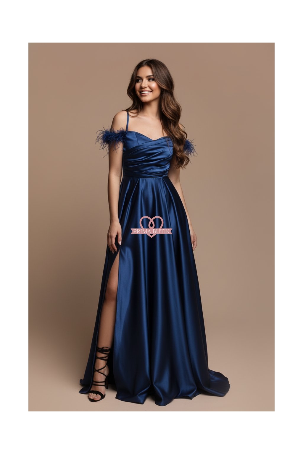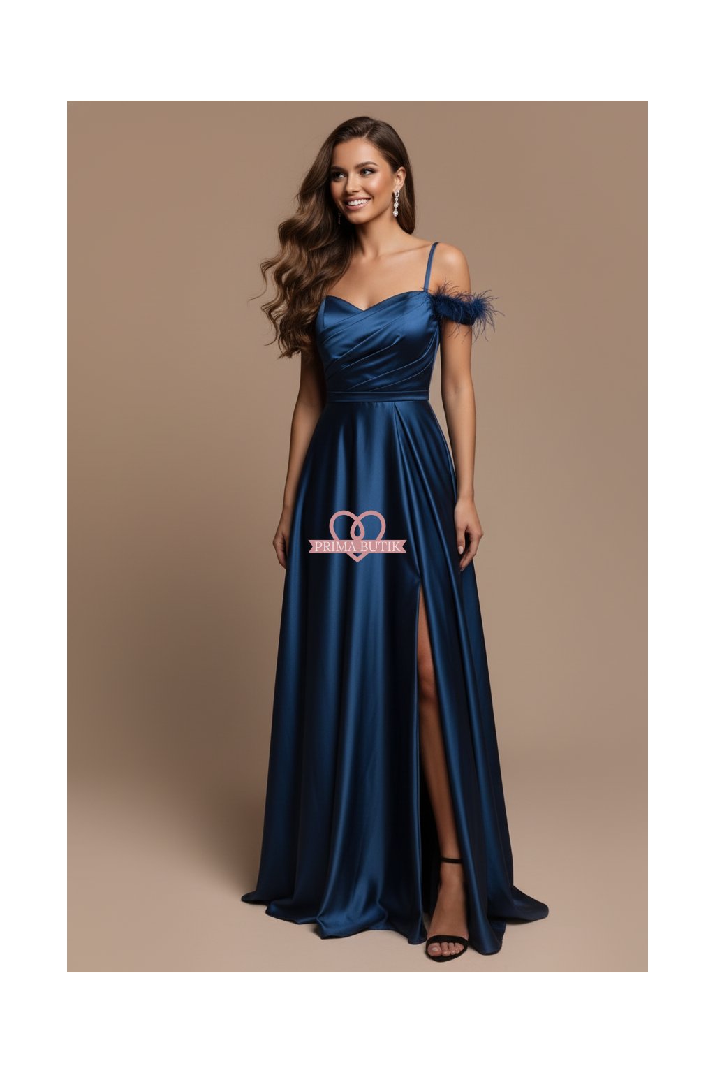 Plesové saténové šaty JOYCE v temné černé barvě, která dodá vašemu večeru nádech tajemství a elegance.  Detail spadlých ramínek zdobený peříčkem přidává na sofistikovanosti a jedinečnosti tohoto modelu. Rozparek umožňuje pohodlný pohyb, což je ideální pro jakoukoliv společenskou událost - od maturitního plesu po gala večer.