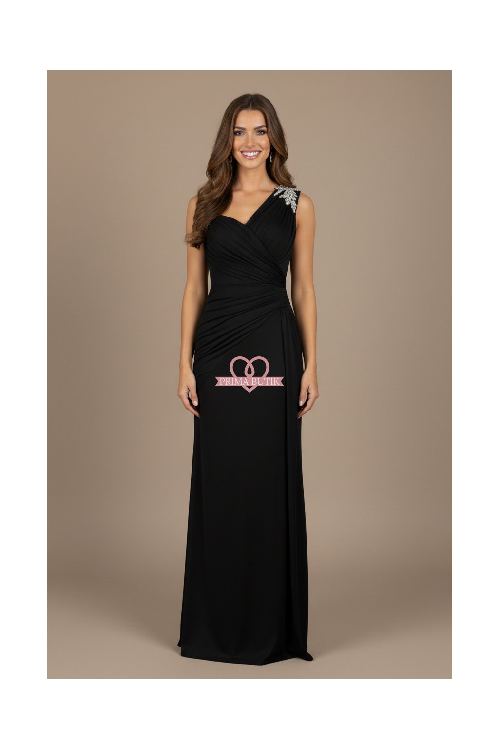 • Přiléhavý střih na jedno rameno s ozdobným zdobením