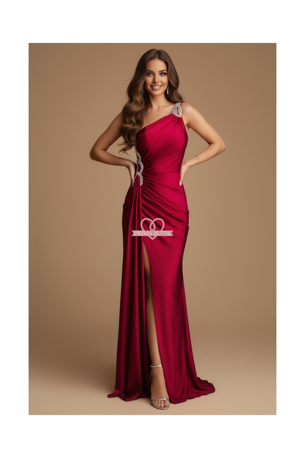 - Přiléhavý střih na jedno rameno s ozdobným zdobením