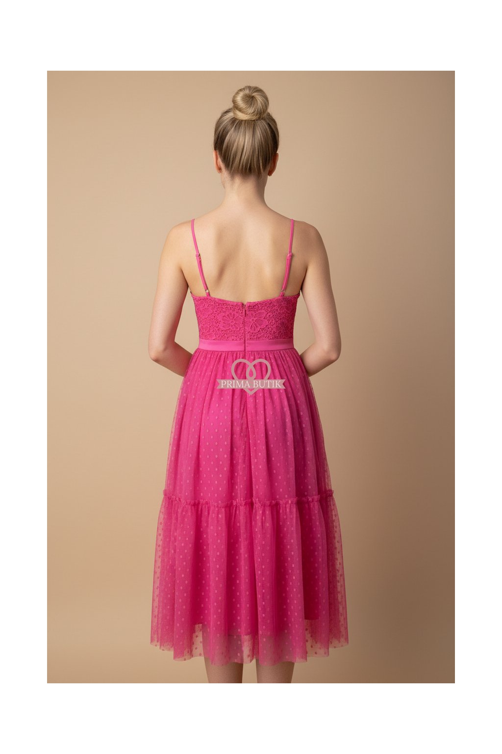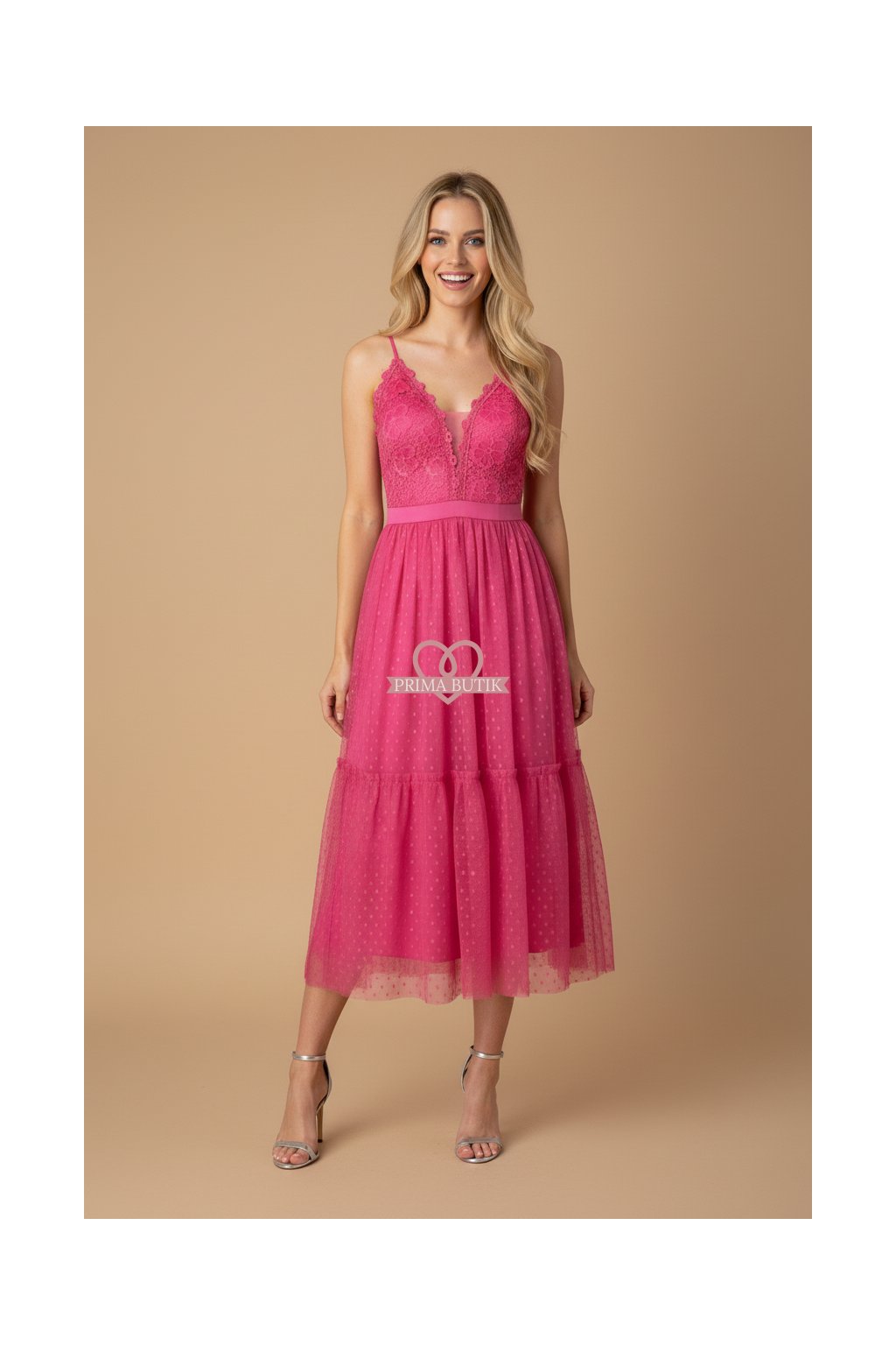 Romantické Krajkové midi Šaty AMARA fuchsiové