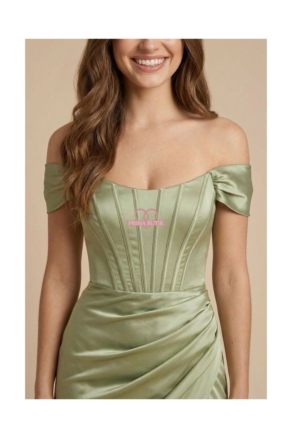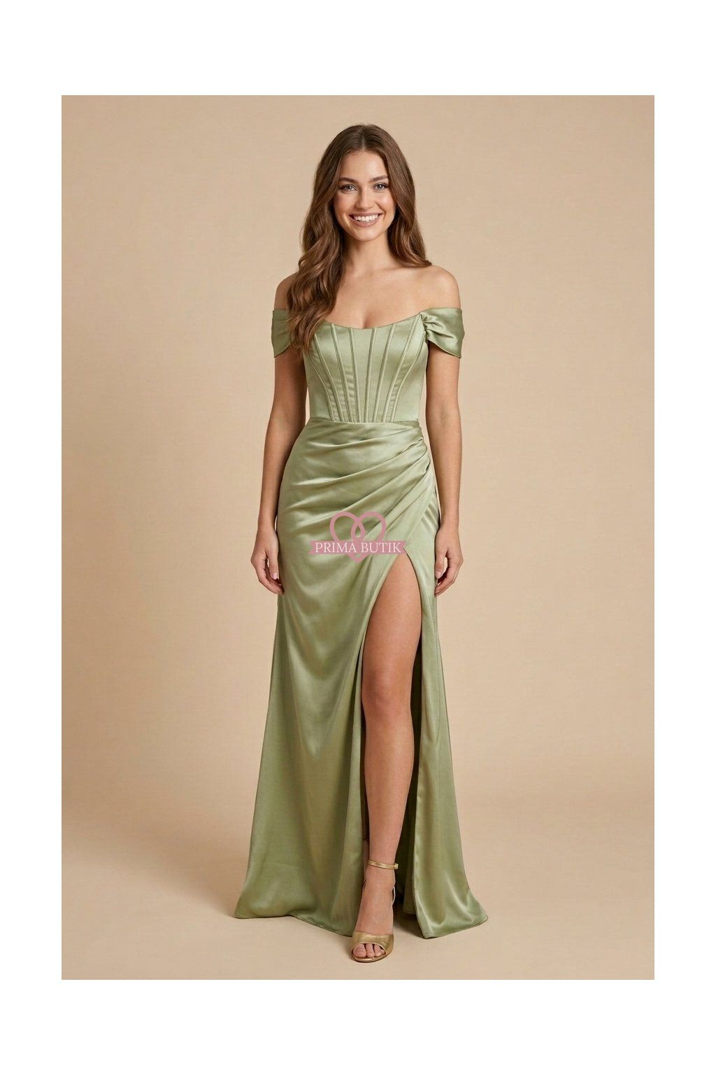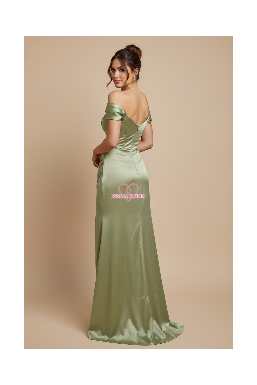 Saténové Šaty pro družičky JOSEPHINA olivově zelené