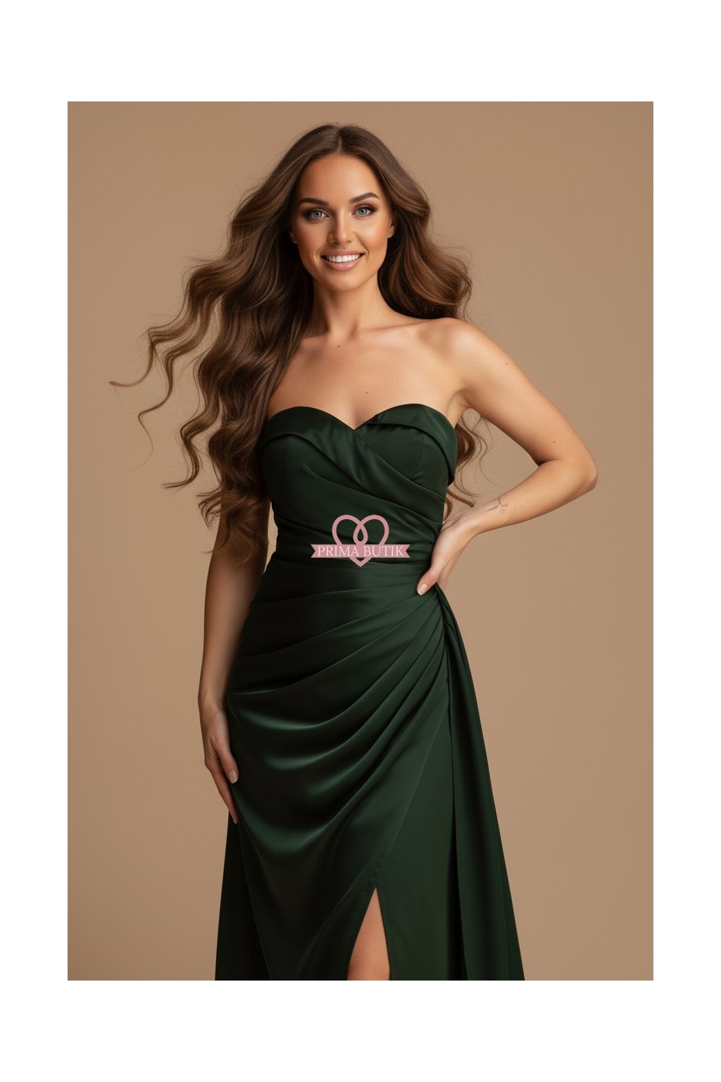 Společenské saténové Šaty CLARA tmavě zelené