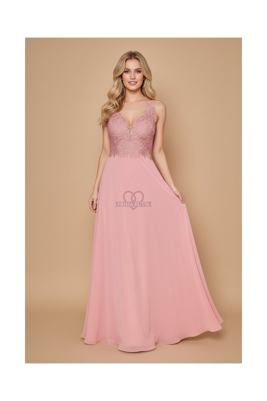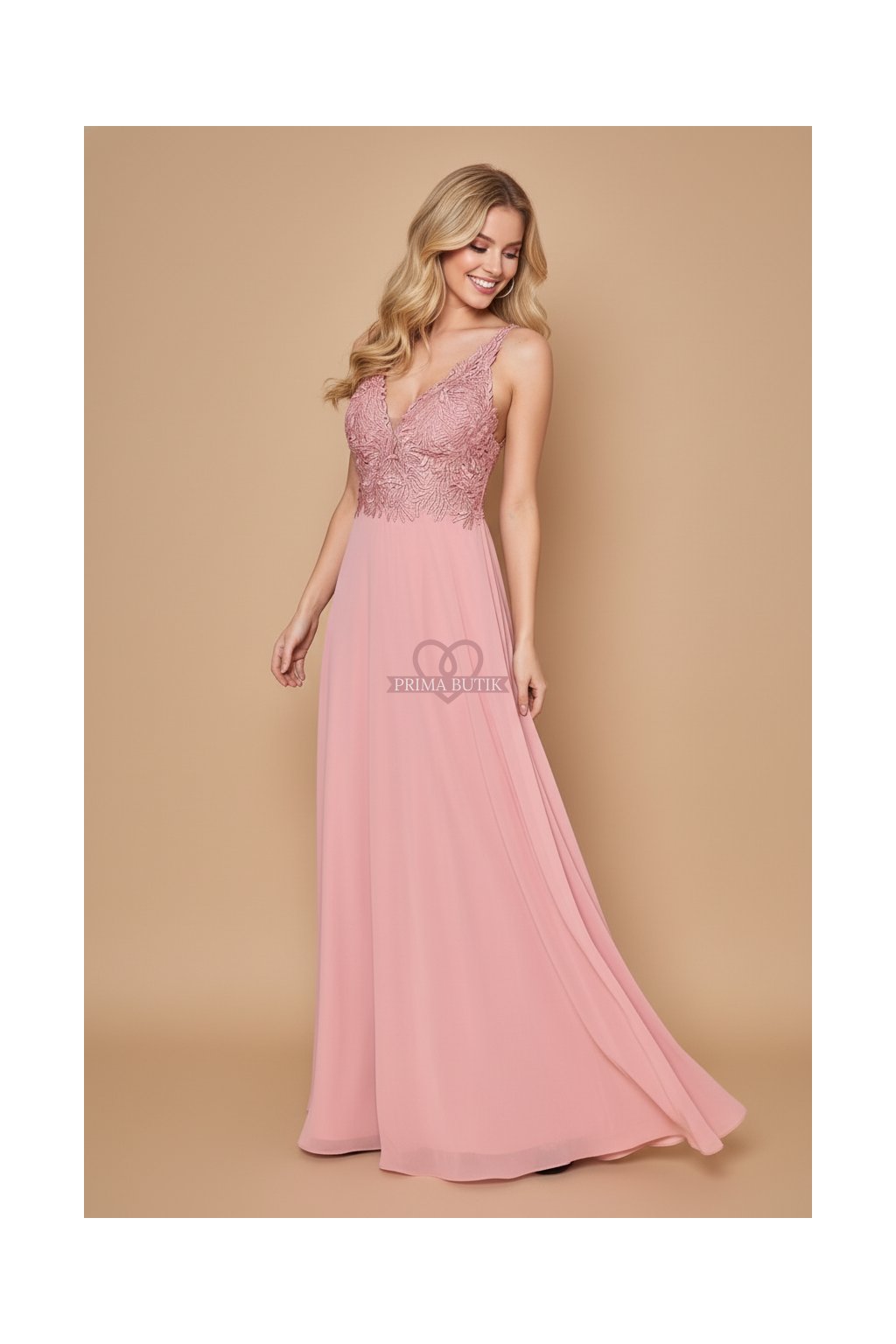 Společenské dlouhé starorůžové šaty