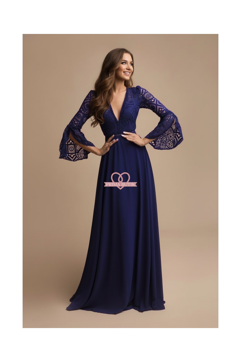 Dlouhé společenské boho šaty s dlouhým rukávem