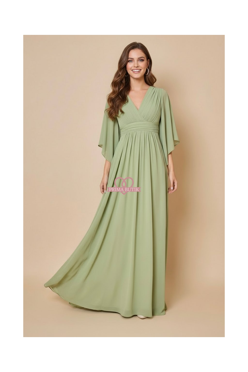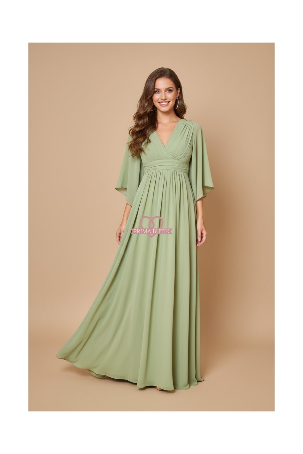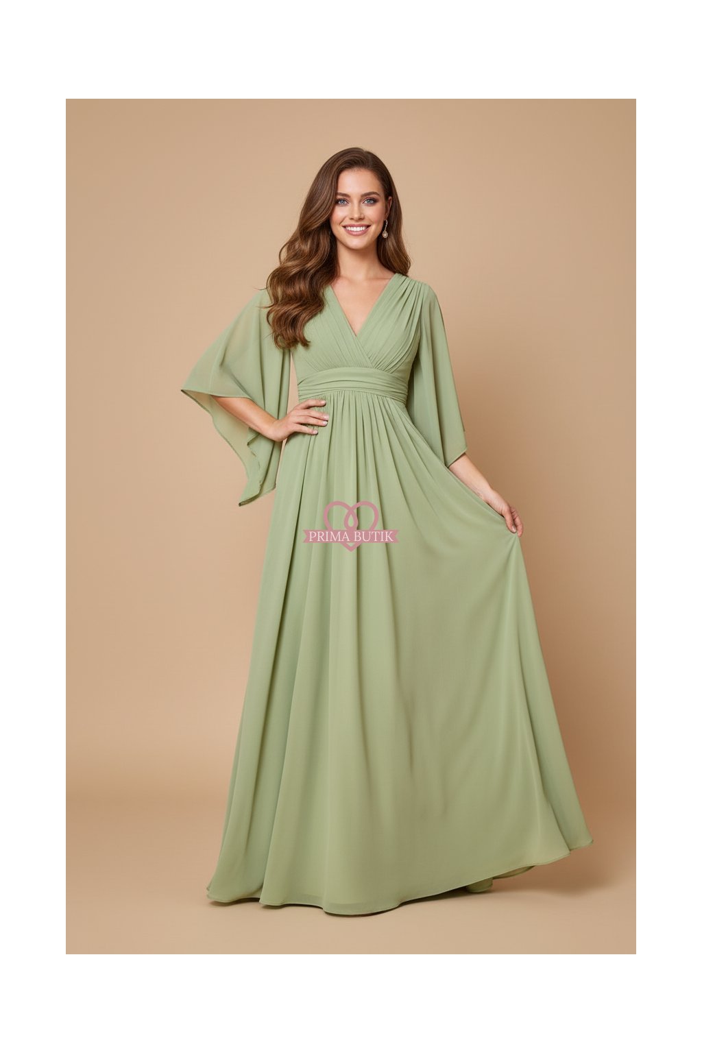 Společenské dlouhé šaty. Šaty mají dlouhé rukávy.