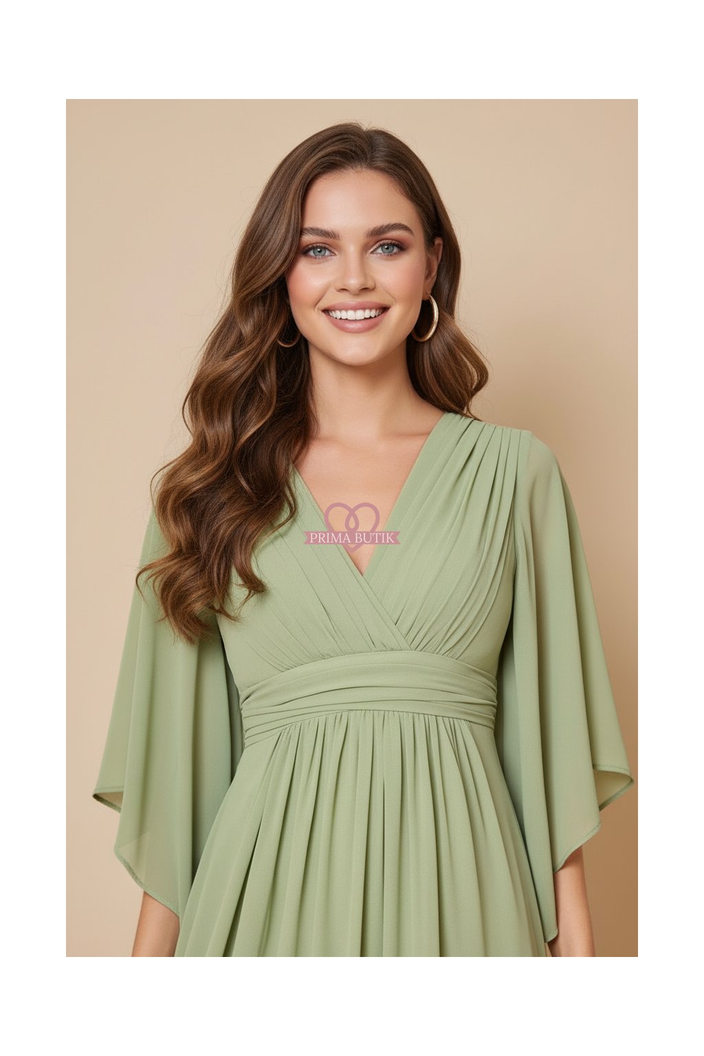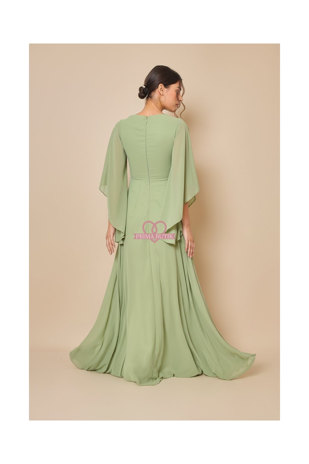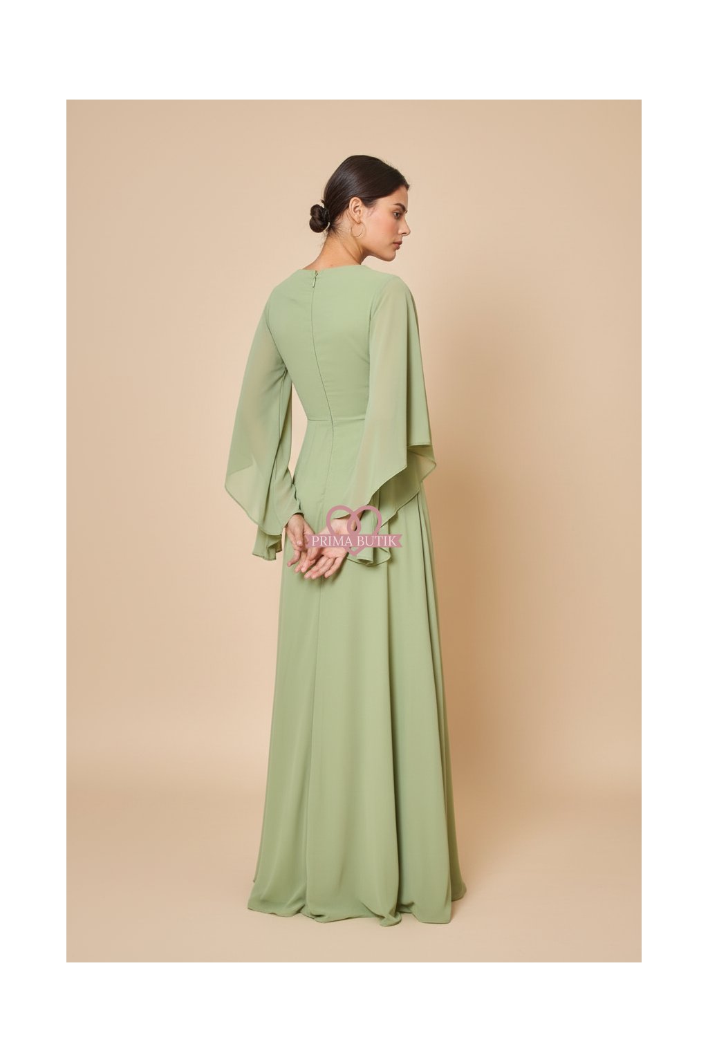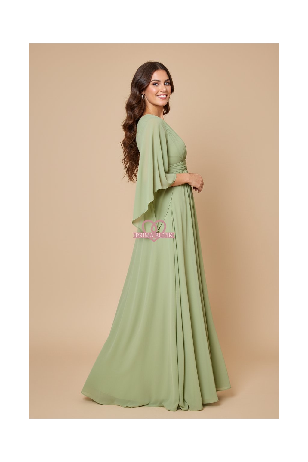 Společenské dlouhé šaty. Šaty mají dlouhé rukávy.