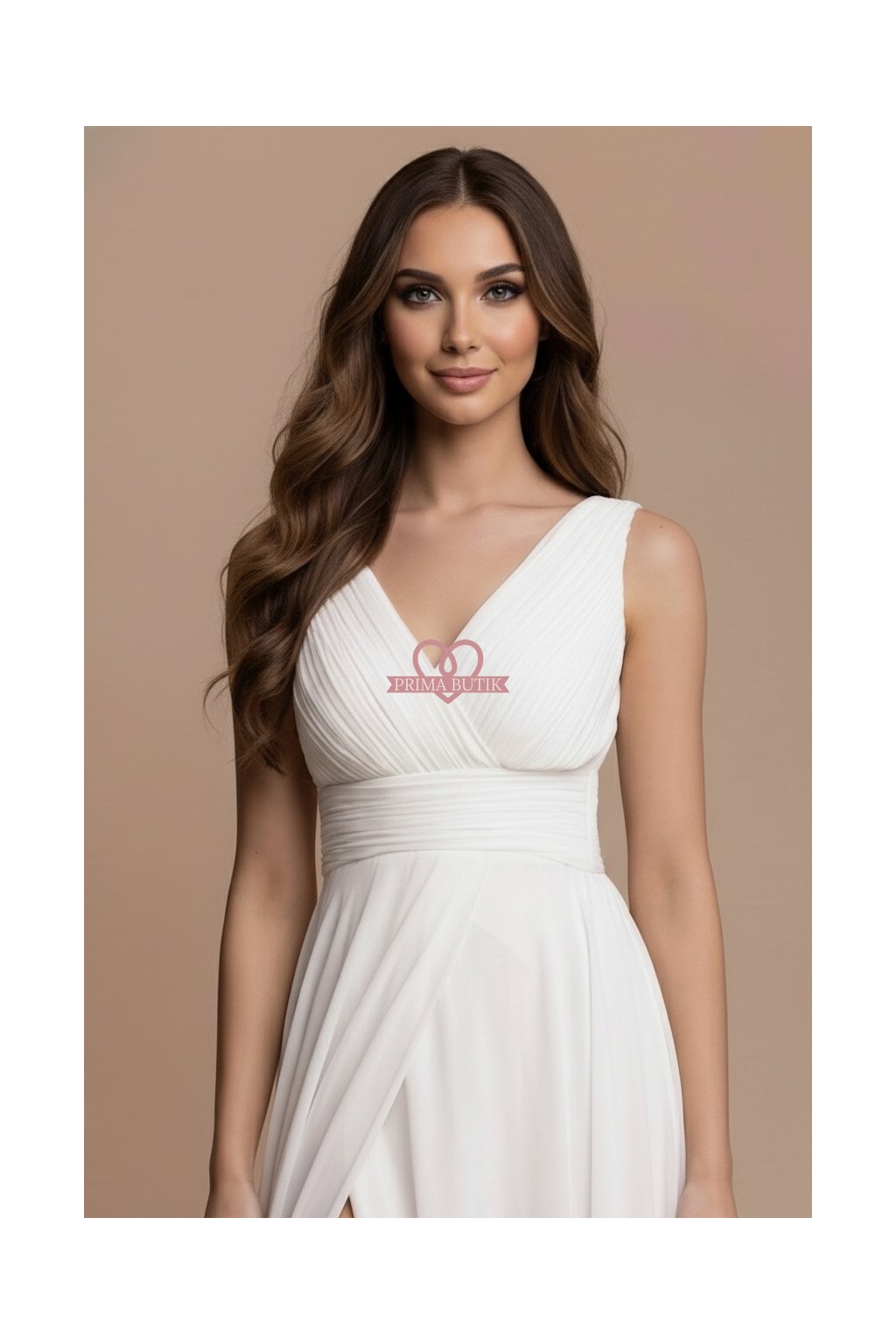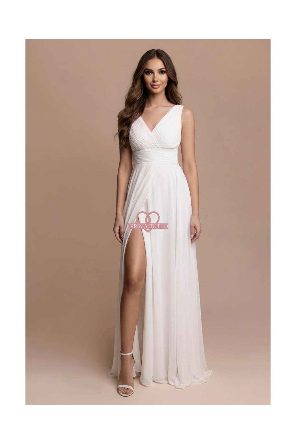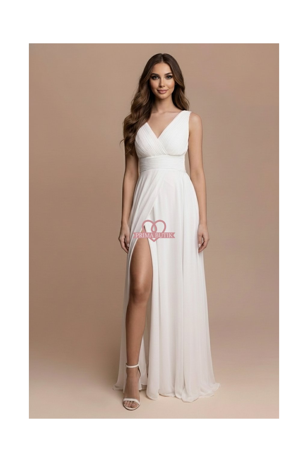 Představujeme svatební šaty CARINE, skvělou volbu pro ten nejdůležitější den vašeho života. Tyto dlouhé bílé šifónové společenské šaty jsou jako stvořené pro svatbu, taneční či jiný slavnostní moment. S volným řaseným výstřihem a ramínky vás zaručeně okouzlí jejich romantická elegance. Dlouhá sukně se spodničkou přidává na rafinovanosti, zatímco vyztužená hrudní partie a žabičková úprava vzadu zajistí, že dokonale padnou. Ať už je váš večer plánovaný jakkoliv nabitě, tyto šaty vám umožní pohybovat se s lehkostí díky praktickému rozparku.