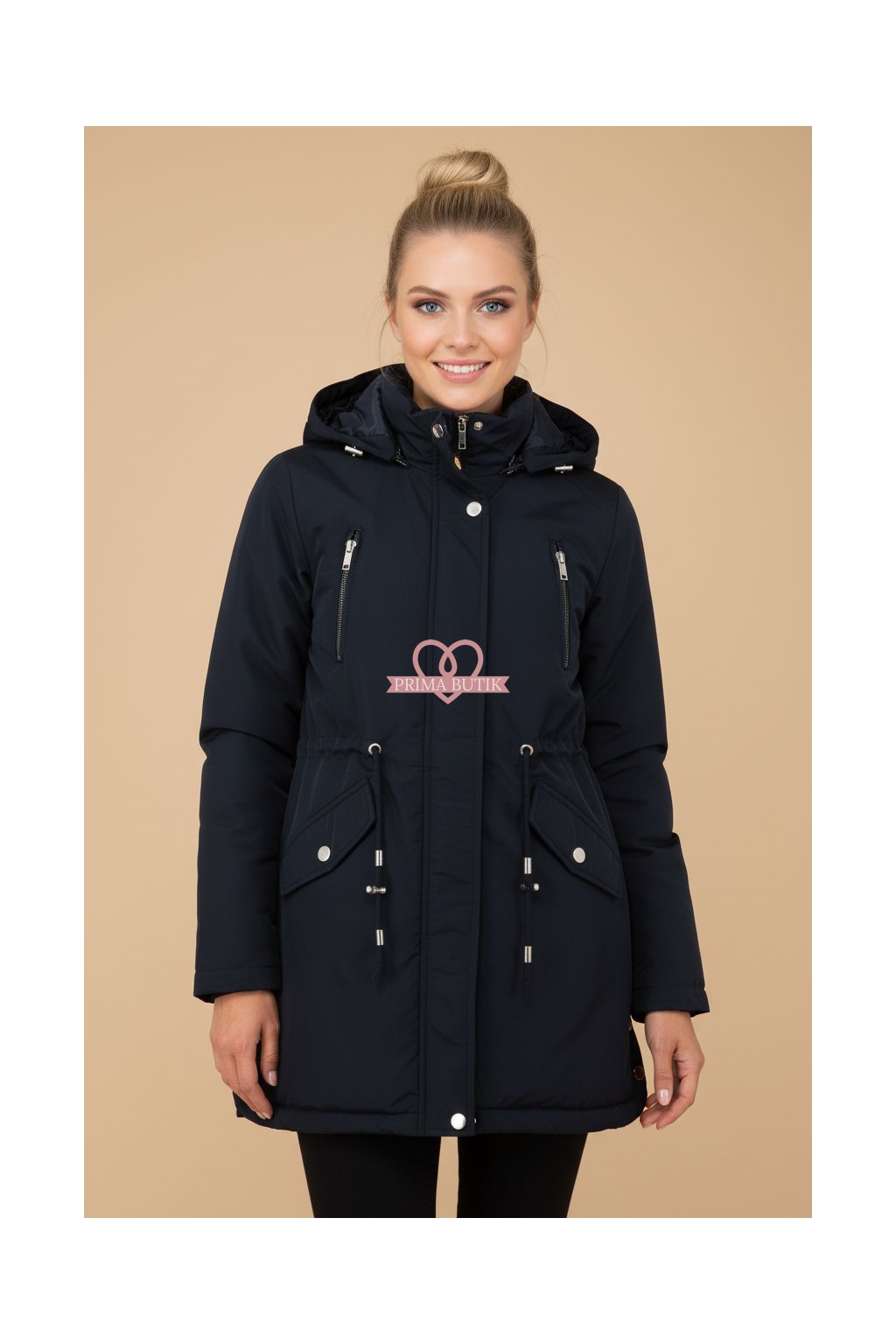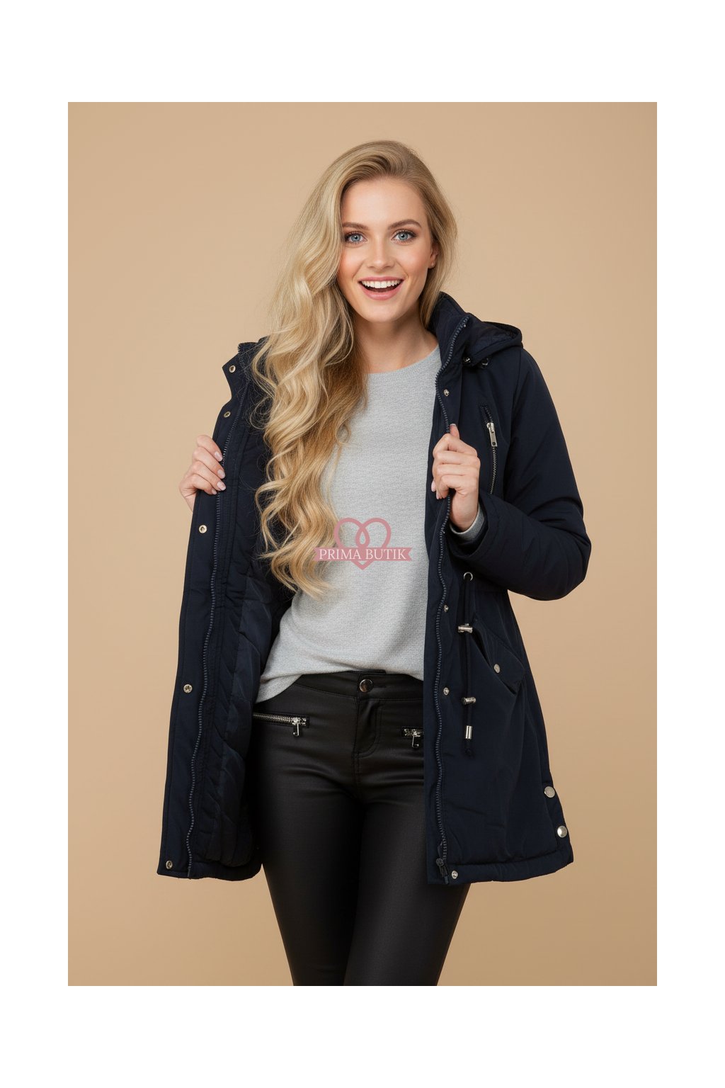 Dámská prošívaná Bunda s kapucou, která je lemována kožešinou.